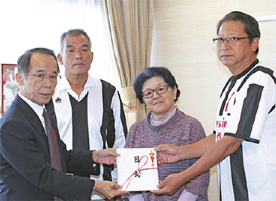 寄付金はキッカーズ40周年とマジョール20周年を記念し開催した「同窓会」で集められた。各家庭で使わなくなったユニフォームなどを持ち寄ったバザーほか、交流試合が行い売上金と募金の浄財を被災地の復興に充てられる。