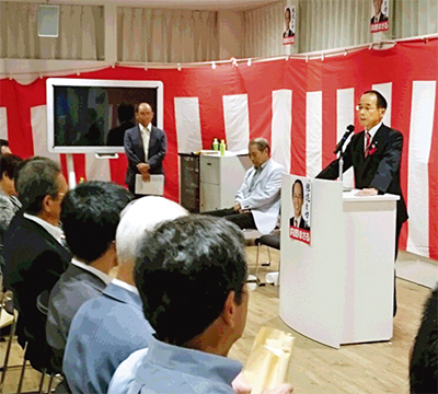 海老名市市長・内野優氏(59)が10月4日、政治団体「内野まさるを支援する会」の新事務所(市内上郷)開設セレモニーを実施した。
