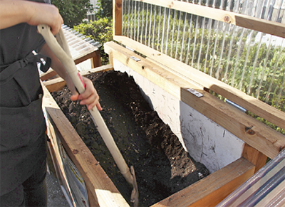 海老名市建築職組合が、県内産の木材で製作している「海老名キエーロ」も、こうした「生ごみ処理機」の一つ。日当たりや風通しの良い場所に設置し、内側スペースに黒土などを敷き詰め生ごみを投入。水と共に混ぜ、上から乾いた土をかぶせる事で土中の微生物の働きを活性化させ、夏場は3日、冬場でも3週間程度で分解が完了。悪臭もなく養分を含んだ堆肥として再利用する事もできるという。