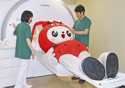 尾崎:このMRIっていう機械を使って検査するからね。台の上で仰向けに寝てみて。