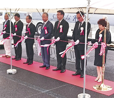 来賓あいさつ後はテープカットが行われたほか、第1号となる観光バス「初バス」も運行。また、100店舗以上が並ぶ手づくりフリーマーケットも開催され、会場を盛り上げた。