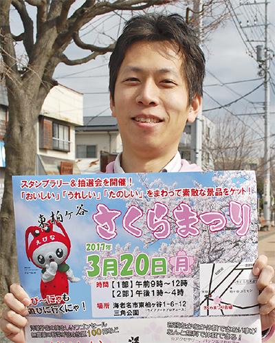 今回、音頭を取ったのは、(株)ライブフードプロデュースの社員であり、東柏ケ谷育ちの小林裕輝さん(31)。同社のデイサービス1周年を記念し企画した地域貢献イベントをきっかけに、将来に向けた地域活性につなげようと住民や商店を巻き込んだ「さくらまつり」を提案した。