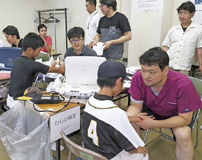 市少年野球連盟に所属の選手134人が7月16日、野球人の天敵とも言われる「野球ひじ」に関するメディカルチェックを受けた。