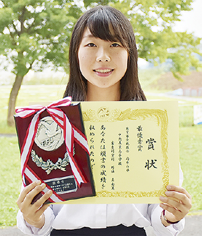 市内中新田の県立中央農業高校に通う野地真由美さん(3年)=人物風土記で紹介=が、県畜産技術センター(本郷)で8月に行われた「学校農業クラブ連盟 家畜審査競技会県大会」の肉牛部門で最優秀賞を獲得した。