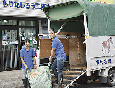 もりたしろう工務店が「おがくず」の寄贈を始めたのは3年前。それ以前は作業場で木材を加工する際に出るおがくず・かんなくずを、一般ごみでは廃棄できないため産廃業者に依頼し有料で処分していたが、ポニーやモルモットたちがおがくずを必要としていると聞き「ポニーたちの役に立つなら」と提供を決めた。