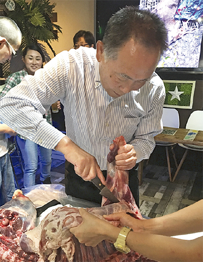 当日は解体体験や試食のほか、現役猟師との交流やスライドショーを通しての現場紹介などが行われた。