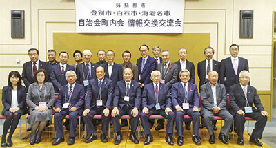 海老名市と姉妹都市(北海道登別市・宮城県白石市)の自治会連絡協議会(自治連)がこのほど、情報交換などの交流会を開き、海老名市内で親睦を図った。