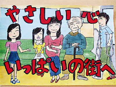 市長賞/樫村真音(有鹿小6年)「やさしい心 いっぱいの街へ」、教育長賞/川口友彩(上星小3年)「みんなでたすけあい えがおがいっぱい」、社会福祉協議会長賞/清水仁子(今泉小1年)「ひとはみんな すてき」、平岡麻依(同3年)「一つのめからはじまる みんなのわ」、加藤実玖(上星小6年)「みんなに 思いやり!」、熊丸璃音(今泉小6年)「少しの支えが 大きな力に」、豊島咲季(柏ヶ谷中3年)「福祉で 笑顔広がる」、宇土菜々笑(大谷中3年)「考えよう相手の気持ち」