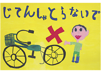 県防犯協会連合会と県自転車防犯協会が主催する「自転車盗難防止啓発ポスター」の小学生の部で、入谷小1年生の小野善公(よしゆき)くんの作品が最優秀賞に輝いた。
