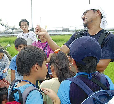 網を使って田んぼの生物を観察した子どもたちからは、「初めて見た。すごい」などの歓声が上がった。座間小3年生の男の子は「ザリガニやカエル、ドジョウを見つけた」と嬉しそうだった。