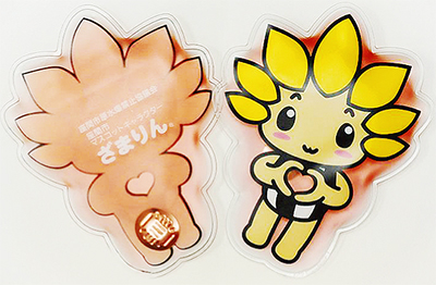 このカイロは、今夏に同協議会が作製したクールパック「ひんやり!ざまりん」が好評を博したことから企画された。中のチップを押すと発熱する仕組みで、使用後も5分程度ゆでると再利用できるエコ仕様だ。
