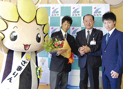 遠藤市長は「兄弟揃って勝利をもぎ取ってほしい」と激励した。