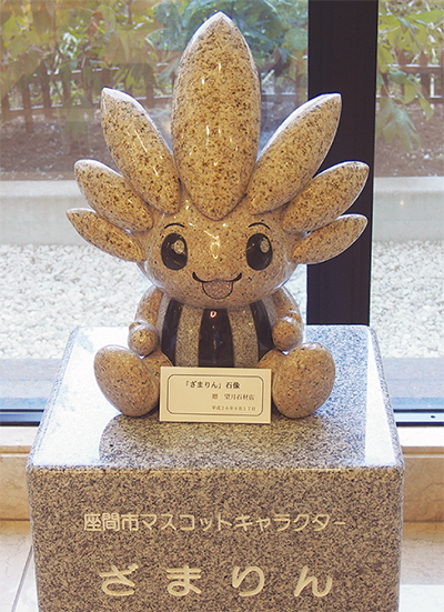 座間市役所1階の市民ホールに、市マスコットキャラクター「ざまりん」の石像が登場した。