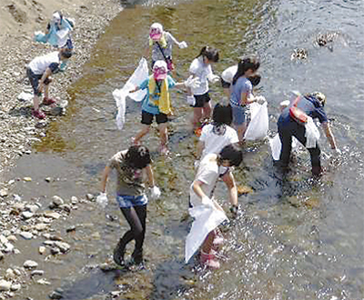 この日は、3班に分かれて作業を実施。参加者は長靴をはいて川に入り、ゴミを丁寧に拾った。