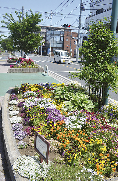 取組みは2000年から。人手不足と資金繰りの課題を解決するため里親制をとり、地域企業からスポンサーを募って花苗購入に充てた。現在、里親は14人。「一つの団体で管理すると画一的になってしまう。個人個人の感性に任せたことで、色々な花壇を見ることができる」と関吉会長は話す。