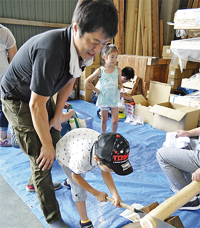 木材や建築資材、住宅機器、SE構法プレカット加工などを行う株式会社カナモク(小松原)は7月29日、夏休みの家族に向けたイベントを開いた。