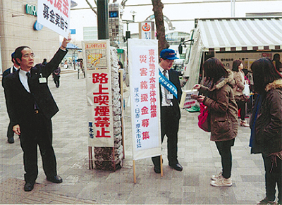 3月11日に発生した「東日本大震災」による被災者の復興支援を目的とした義援金募金活動が各所で行われている。
