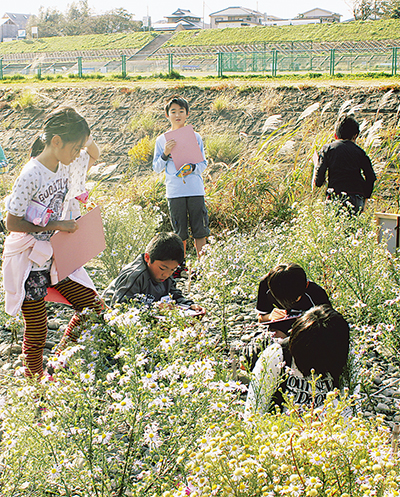 同NPO会長の西井伯夫さんは「本来その川にあるべき花を守る意識を持ってもらいたい。本来の花が咲けば、そこにいるべき虫や野鳥も戻ってくる。すべてが繋がっていることを児童に学んでほしい」と語る。
