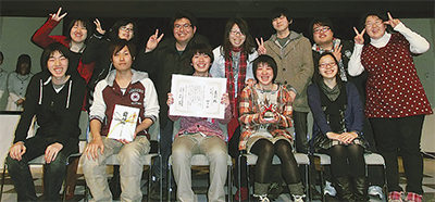 一般的に黒色を基調としているサイバー空間のイメージカラーを、白色に変更。3体のキャラクターも能力が一目で分かるように、メリハリをつけたデザインにした。BGMや効果音もジャンルにとらわれずに、ゲームの雰囲気に合った音を作った。「人数が多いため、みんなの意見をまとめるのが大変だった」とチームリーダーの福田裕紀さん(3年)。応募締め切り前日まで作業をして作り上げた。