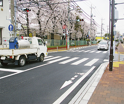 この路面表示は、昨年11月に策定された国土交通省・道路局と警察庁・交通局のガイドライン「安全で快適な自転車利用環境創出ガイドライン」に基づき、軽車両のルールの徹底とマナーの向上を目指し、市内で初めて取り組まれた。