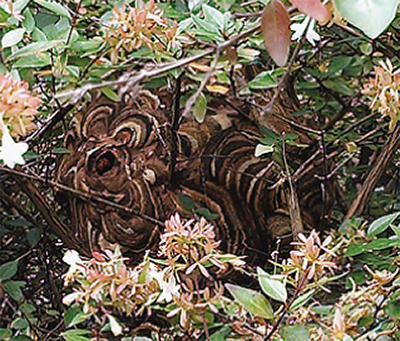 市内の公園は市公園緑地課で駆除。9月6日までに厚木中央公園と依胡田公園(長谷)、緑ヶ丘まる公園で行っている。昨年は1件だった。また市生活環境課によると個人宅などは7月末までに100件を駆除。昨年同時期は30件で、約3倍のペースだ。