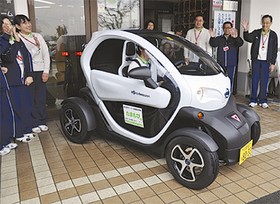 訪問介護の現場でスタッフが超小型電気自動車(EV)を活用する実証実験が1月9日、市内小野の介護施設、玉川グリーンホーム(原田忠洋施設長)でスタートした。介護施設での取り組みは国内初めてで、実用性や使い勝手などを検証する。