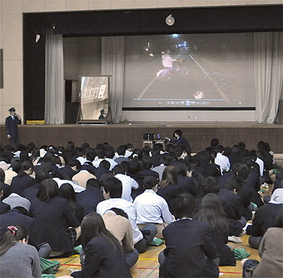 講習会に参加した山崎玲美さんは「自転車通学をしていて危ないと感じたことがあったが、映像を見て事故の怖さがより分かった。教えてもらった交通ルールを守っていきたい」と感想を述べた。