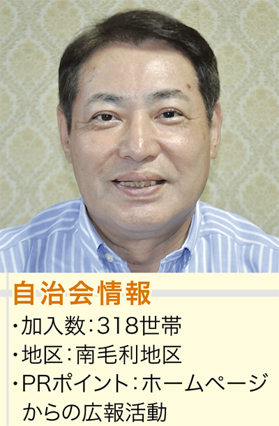 昨年9月にホームページを開設し、活動の情報発信に注力。通算アクセスは2000を超えた。回覧板の補助や行事レポートに加え、住民の役立つ情報も掲載し見てもらえるよう工夫。「活動を知ってもらって誰でも参加してほしい。良ければ入会してもらえたら」。