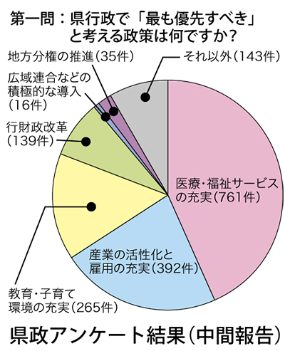 今回の調査は電話を中心に行い、1回目の有効回答件数は1751件(2回目は集計中)でした。頂いた御意見・御要望は、議会活動を通じ、県政に反映します。
