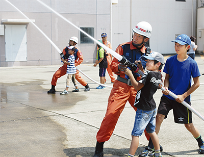 市消防本部予防課では「地震など大規模災害が発生したとき、消防士だけでは立ち向かえない。これらの体験をすることで、子どもたちも一緒に学んでほしい」と開催の意義を話した。