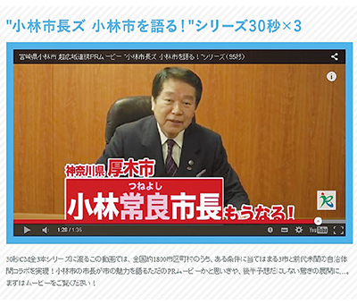 動画では厚木市のほか、青森県八戸市、東京都小平市の「小林市長」が出演。市長自らの声で、小林市と我が街の紹介をしている。