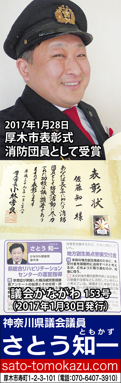 1月28日、厚木市表彰式が行われました。今年は、現役消防団員として、私も一般表彰を受賞しました。