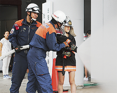 厚木市は、小中学生に防災意識を高めてもらおうと、8月25、26日に夏休み消防体験教室を初めて開催した。市内と清川村から2日間で100人超が参加し、市消防訓練場(北消防署睦合分署)で、ハシゴ車への試乗や起震車を使った震度体験などを行った。