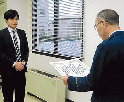 保険料の還付や閲覧履歴の料金未納名目など、巧妙な手口が繰り返される振り込め詐欺を未然に防いだとして、8日にローソン新厚木高校前店の奥津薫店長(恩名在住・28)に厚木警察署から感謝状が贈られた=写真下。
