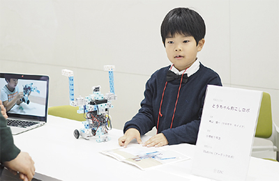 崎山君は「U-22プログラミング・コンテスト」などで入賞した『とうちゃんおこしロボ』で応募。ブロックと専用キットで製作されたもので、電源を入れると自走して腕を振り、音と光を発する。「こんなのあったらいいな」をテーマに、全国から167点の応募があり、事前審査から10人が選ばれ、当日ブースで発表。崎山君はプログラムや、実際にロボットを動かして審査員らに見せ説明。苦労したところ、改善したところなどを話した。審査員からは「身近な問題を解決する視点がよかった」との講評を得て、入選となった。崎山君は「入選はうれしかったがもっと上の賞が良かったので悔しい。ゲームや別のロボットを作ってまたコンテストに出たい」と意欲を見せている。また11月13日には厚木市教育委員会表彰を受けている。