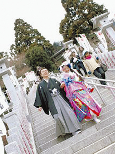 数年前から年1回程度、結婚式を受けているという同神社では「山の上という珍しいロケーションでのお式は、参加者にも喜んで頂いています」と話す。
