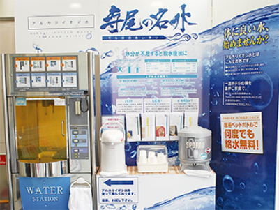 名門ホテルや飲食店、児童施設をはじめ、大型スーパーやドラッグストアなどでも導入されている(株)OSGコーポレーション(本社/大阪)の「アルカリイオン水」のウォーターサーバーを、ジャパンニューアルファ綾瀬店が導入した。プロも愛用する水を、無料で楽しむことができる。