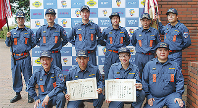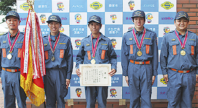 ▽ポンプ車操法【団体】最優秀・早園、優秀・綾西、優良・綾北/【個人】指揮者・黒沢裕矢(早園)、1番員・久本義一(同)、2番員・中山智貴(同)、3番員・高津賢太(同)、4番員・落合健(同)