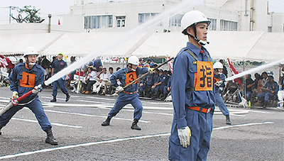 消防隊員や消防団員の訓練における基本的な器具操作・動作である「消防操法」の技術を競う市消防操法大会が7月23日、綾瀬市オーエンス文化会館駐車場で開催された。今年はポンプ車操法の部で早園分団が、小型ポンプ操法の部で綾西分団が最優秀賞を獲得した。