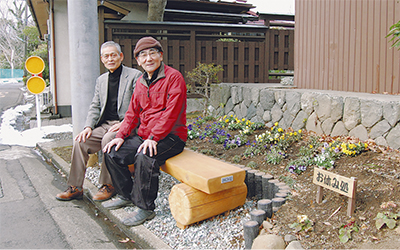 昨年の11月にベンチを寄贈した梅沢文明さんは草が生えていた敷地の一部に花を植え、整えて設置場所として提供。「付近の道路はもともと散歩コースだから、大人から子どもまでよく腰掛けている様子をみかけます」と笑顔をみせる。
