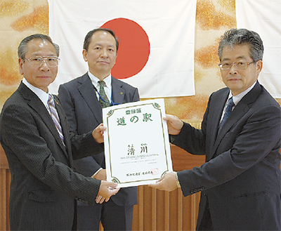 11月11日には村役場で登録証伝達式が行われ、国土交通省関東地方整備局横浜国道事務所の杉崎光義所長から大矢明夫村長に登録証が手渡された。