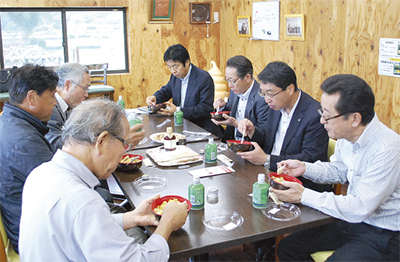 愛川町三増の神奈川中央養鶏農業協同組合(彦坂茂組合長)が9月22日から、県産ブランド肉用鶏「かながわ鶏」を使った親子丼の販売を開始した。お披露目となったこの日は、小野澤豊愛川町長らが参加して試食会も行われた。