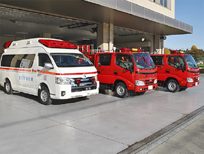 高まる救急需要に備え、消防力強化を目的に更新したもので、救急自動車にはビデオ喉頭鏡など救急救命士による高度な救命処置を行なう資器材のほか、患者監視装置、電動式心肺人工蘇生器など最新の装備を配備している。