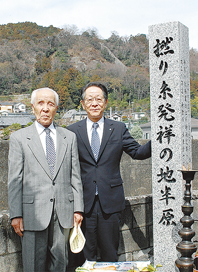 かつて半原の一大産業として栄えた撚糸業。その「糸の町」としての歴史を後世に伝えようと、愛川町半原の井上愛司さんが町に「撚り糸発祥の地」の石柱を寄贈した。3月18日には、除幕式が行われた。
