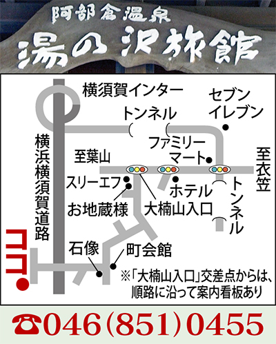 戦国時代には三浦一族の隠し湯とされた天然の硫黄温泉は、疲労回復はもちろん慢性皮膚病や婦人病、糖尿病への適応症があるとされている。また、大楠山一帯の中腹にたたずむ旅館からは、横須賀の街や海が一望でき、冷房なしでも快適に過ごせるほど、爽やかな風が吹き抜ける。