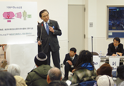 東日本大震災で発生した災害廃棄物(震災がれき)の焼却灰を、芦名にある産業廃棄物最終処分場「かながわ環境整備センター」で受け入れる方針を示してい る黒岩祐治県知事は今月15日、地元住民向けの説明会を行った。会場の芦名コミュニティセンターには510人が詰めかけ(県発表)、受け入れ反対の立場を 強く訴えた。時折怒号や野次が飛び交い、県と地元との溝が改めて浮き彫りになった。