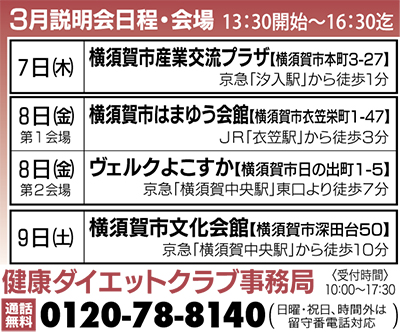 好評につき、横須賀地区では、第17期生を募集中。「健康的にダイエットを」と考えている人は、一度は聞いてみては。