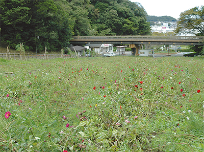 「くりはま花の国」のコスモスが16日の台風26号の雨と強風で大きな被害を受けた。今年は連続して台風が発生した影響でようやく5〜6分まで咲きそろい始めていたが、ほとんどの花びらが散ってしまった。「今月27日と来月4日に予定している花摘み大会の実施は難しいでしょう」と公園管理者は残念がっている。今週末19日(土)・20日(日)の「くりはま花の街フェア」は予定通り行われる。
