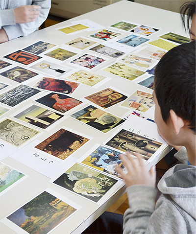 同じ擬音でも、選ぶカードが異なることを挙げ、「人それぞれ感覚が違うことを理解し、互いを認め合うことにつながれば」と黒岩校長。さらにこうした経験をもとに、「本物を見る機会を楽しんでほしい」と話す。授業を終えて児童からは「ひとつのカードからいろんな言葉の表現が出てきて面白かった」「美術館で作品を見てみたいと思った」と、さまざまな感想が上がっていた。