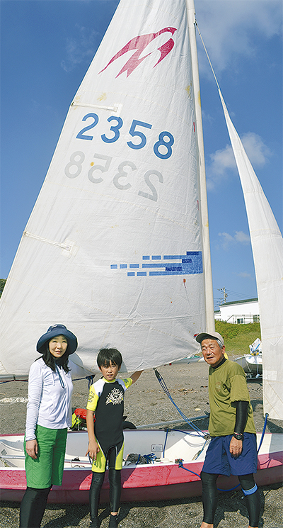 祖父、娘、そして孫―。3世代でヨットに親しみ、大会に挑んだ家族がいる。第88回ヨット競技市民体育大会が18日、長浜海岸で行われた。史上初となる3世代同時エントリー。三浦市在住の仁藤勝郎さん(70)と公郷町在住の本島海音子(みおこ)さん(38)が2人乗り用、孫の駿太郎(はやたろう)君(9)は1人乗りで海へ挑んだ。